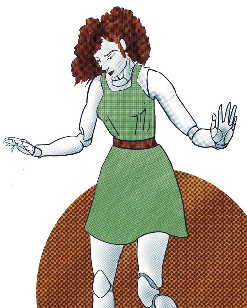 Threadbare is a greater toy gollum created by a struggling gollum maker who is hiding in his house in the woods with his daughter. He thinks he has failed in making a greater toy gollum because the gollum will not join his “party.” The world is set up with gaming mechanics, which include a party system that gives the party leader the ability to look at the stats and attributes of the members. As a gollum maker, the normal is that his gollums with “join party” at his command. However, as a greater toy gollum, his new creations must choose to join themselves, however, there is one problem that the maker overlooks–his new creations don’t know how to read the prompts that swim into view. After stepping out and then coming back to a destroyed (by a cat and some bad luck) work shop, he reluctantly gives the “failed” experiment to his daughter as a toy and companion.